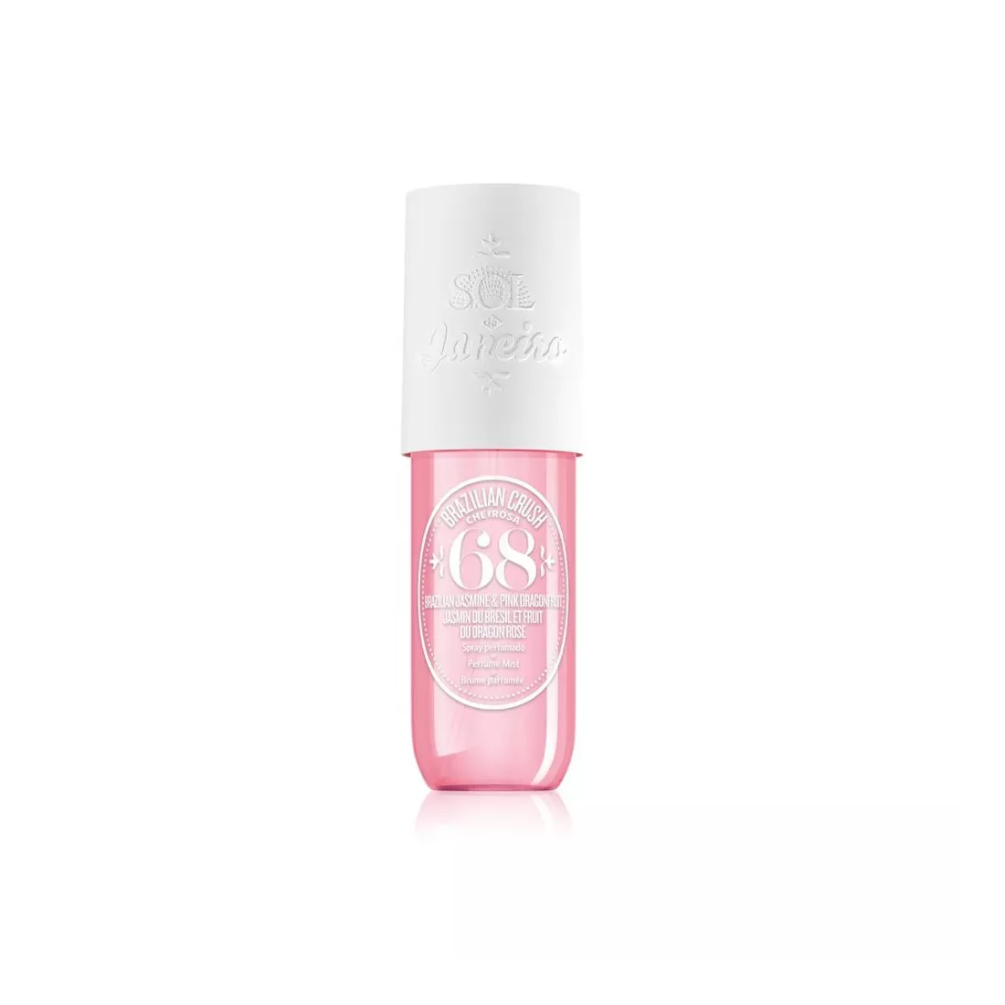 Zanurz się w promiennych nutach brazylijskiego jaśminu, różowego smoczego owocu i czystej wanilii. Perfumowany spray do ciała i włosów Sol de Janeiro Brazilian Crush Cheirosa '68 przyjemnie Cię odświeży i zapewni to samo rozkoszne uczucie jak ciepłe promienie słońca muskające skórę.