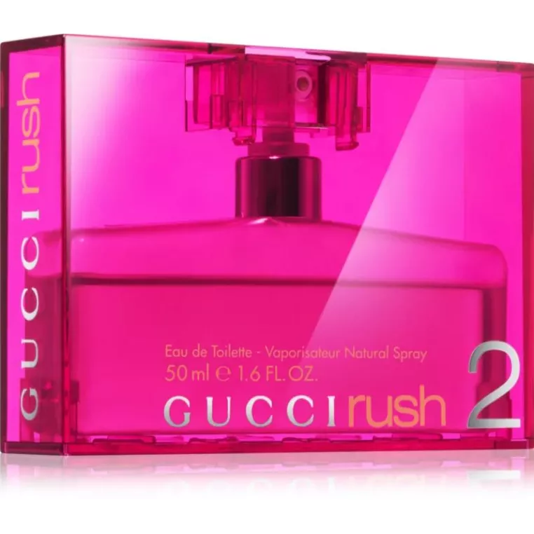Zapach Gucci Rush 2 zaprezentowano w 2001 roku. Nawiązuje do sukcesu popularnego zapachu Gucci Rush z 1999 roku. Tak samo jak jego poprzednik, także Rush 2 ma bardzo nietradycyjny flakon o geometrycznym kształcie, który nie tylko spodoba się miłośnikom minimalistycznego designu, ale też wspaniale zmieści się w każdej torebce.