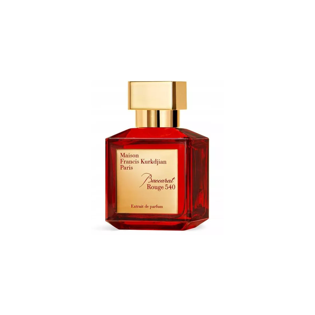 Flakon eksperymentuje ze światłem: po raz pierwszy w czerwieni – jak oszałamiająca czerwona suknia wieczorowa, przypominająca kultową czerwień Baccarat. Ekstrakt perfum – drzewny, z nutą ambry, kwiatowy jaśmin - szafran - gorzki migdał - drzewo cedrowe - akord piżma - ambra